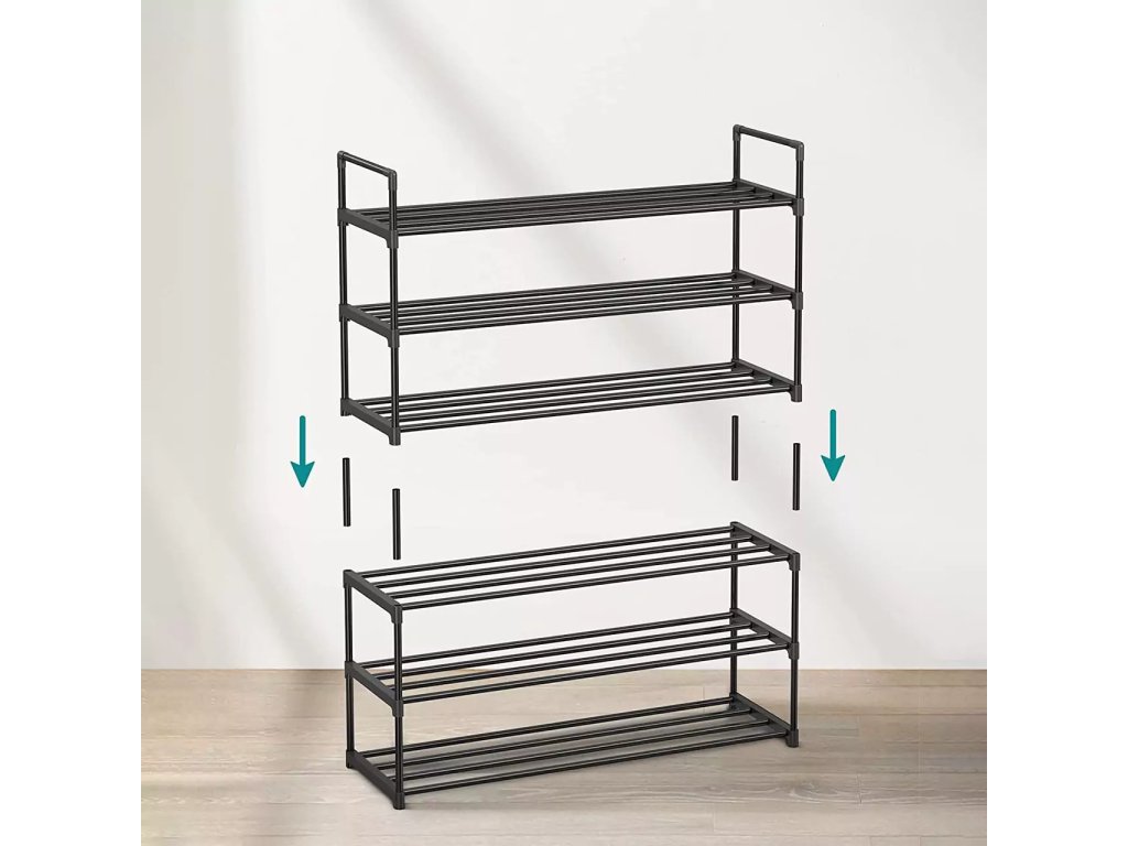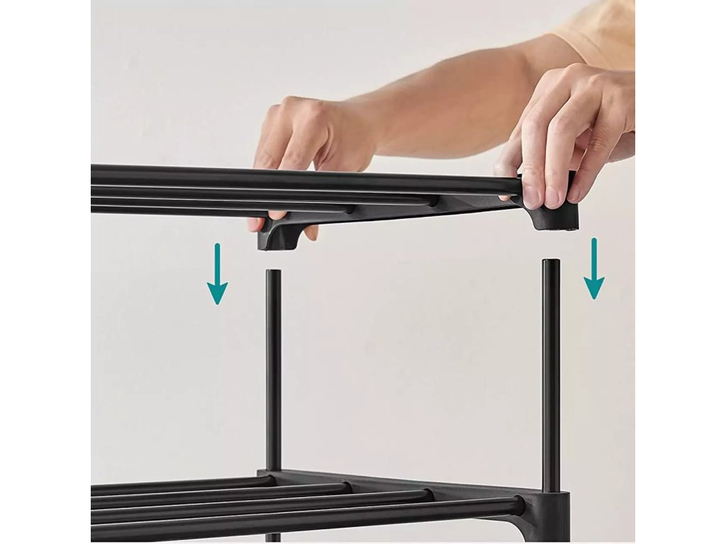 - Je možné odstrániť priečniky hore a naskladať jeden organizér na ukladanie topánok na druhý a vytvoriť tak viac miesta