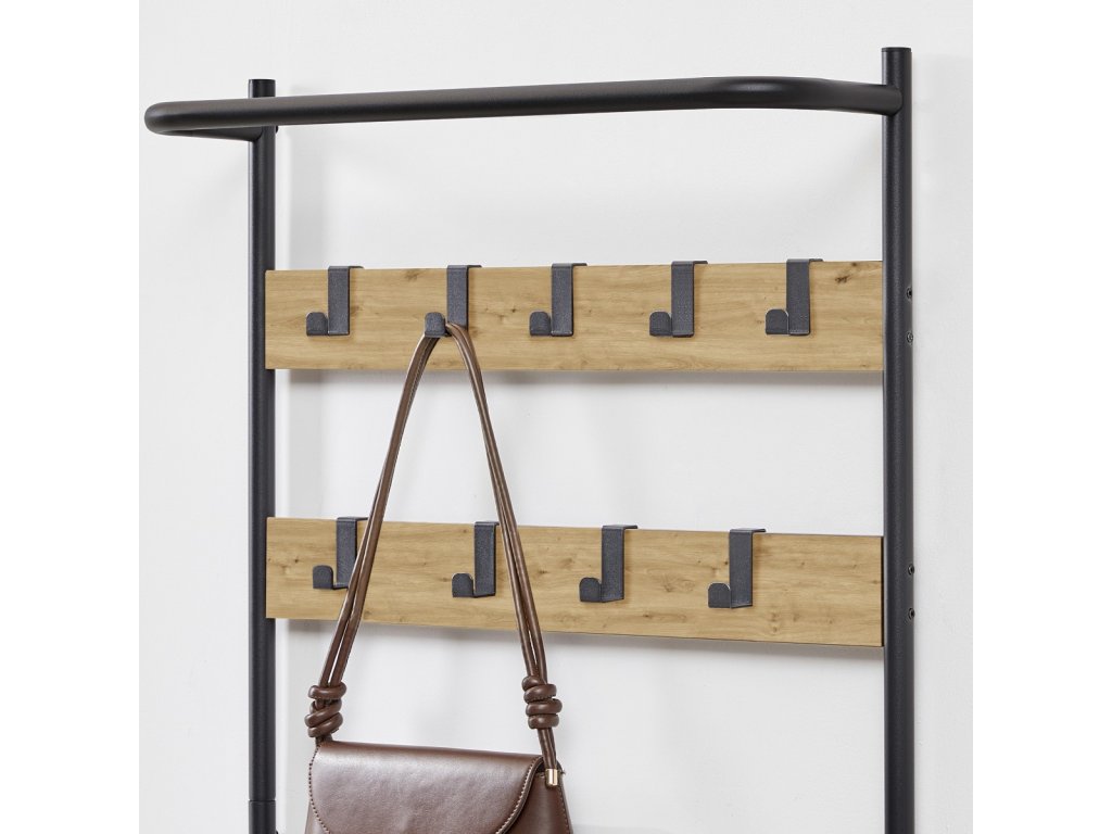 Vďaka pevnej konštrukcii a kvalitným materiálom poskytuje stabilitu aj pri každodennom používaní. Tento typ vešiaka je ideálny do predsiení, chodieb alebo menších bytových priestorov, kde je potrebné maximálne využiť miesto.