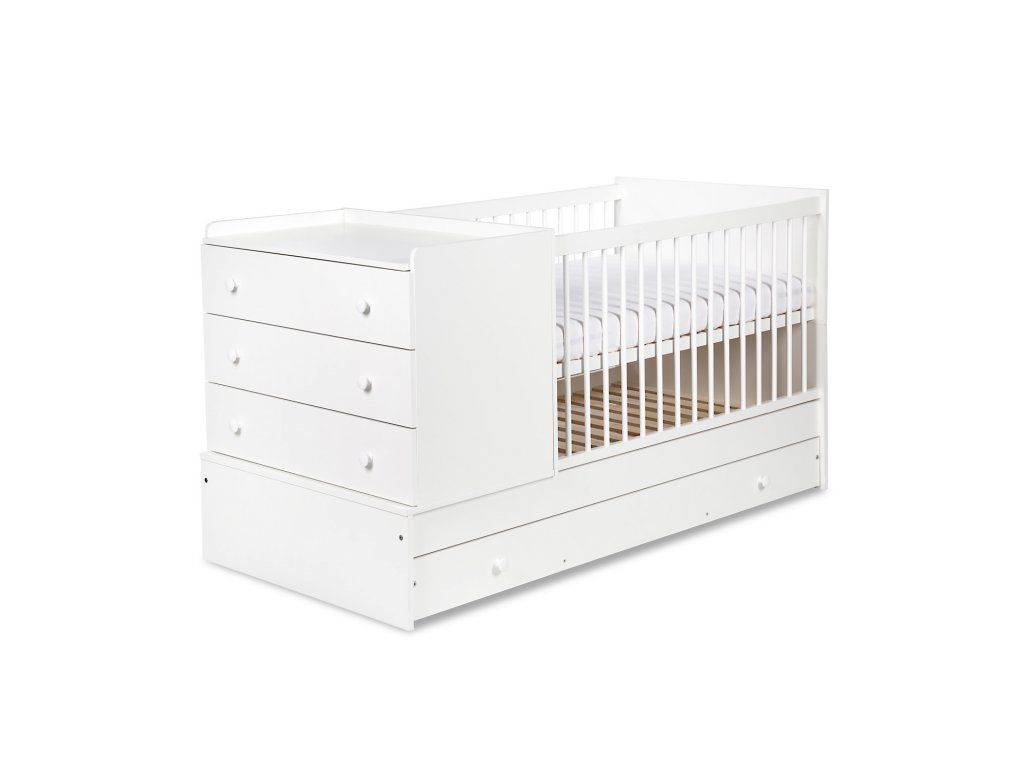 Biela detská postieľka s komodou KOMPAKT