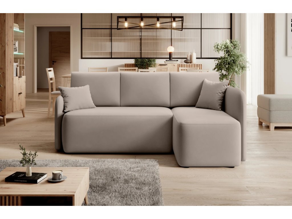 AKCIA Béžová rohová sedacia súprava HADSON - pravý roh II. akosť