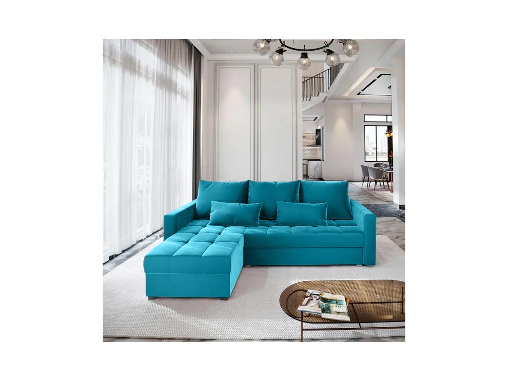 AKCIA Modrá rozkladacia rohová pohovka ZENOVA 220x140 cm, obojstranná II. akosť KRONOS 13