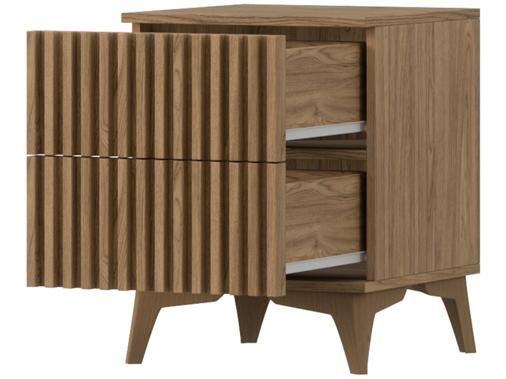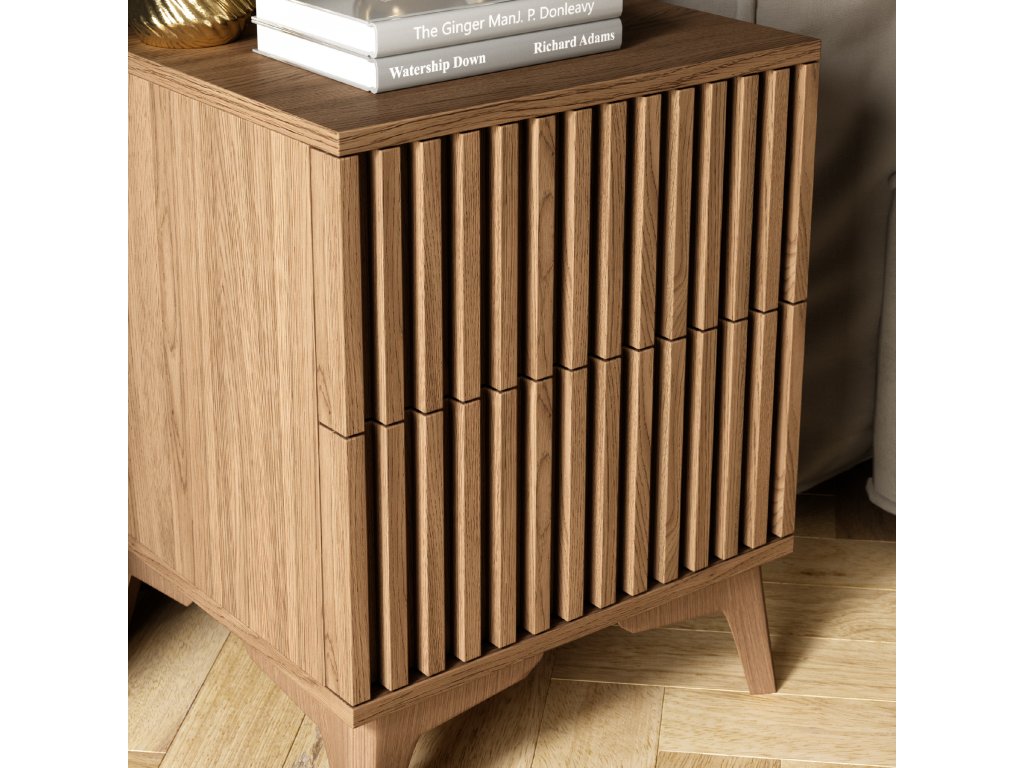 Tento stolík je nielen štýlovým doplnkom, ale aj praktickým riešením pre každodenné použitie. Či už slúži ako nočný stolík pri posteli alebo príručný stolík v obývačke, jeho dve priestranné zásuvky vám pomôžu udržať poriadok a mať všetko potrebné vždy po ruke. Vďaka svojmu kompaktnému dizajnu a dekoru dubu artisan ľahko zapadne do akéhokoľvek interiéru, kde prinesie pocit útulnosti a elegancie. Je to ideálna voľba pre každého, kto hľadá spojenie funkčnosti s nadčasovým štýlom.