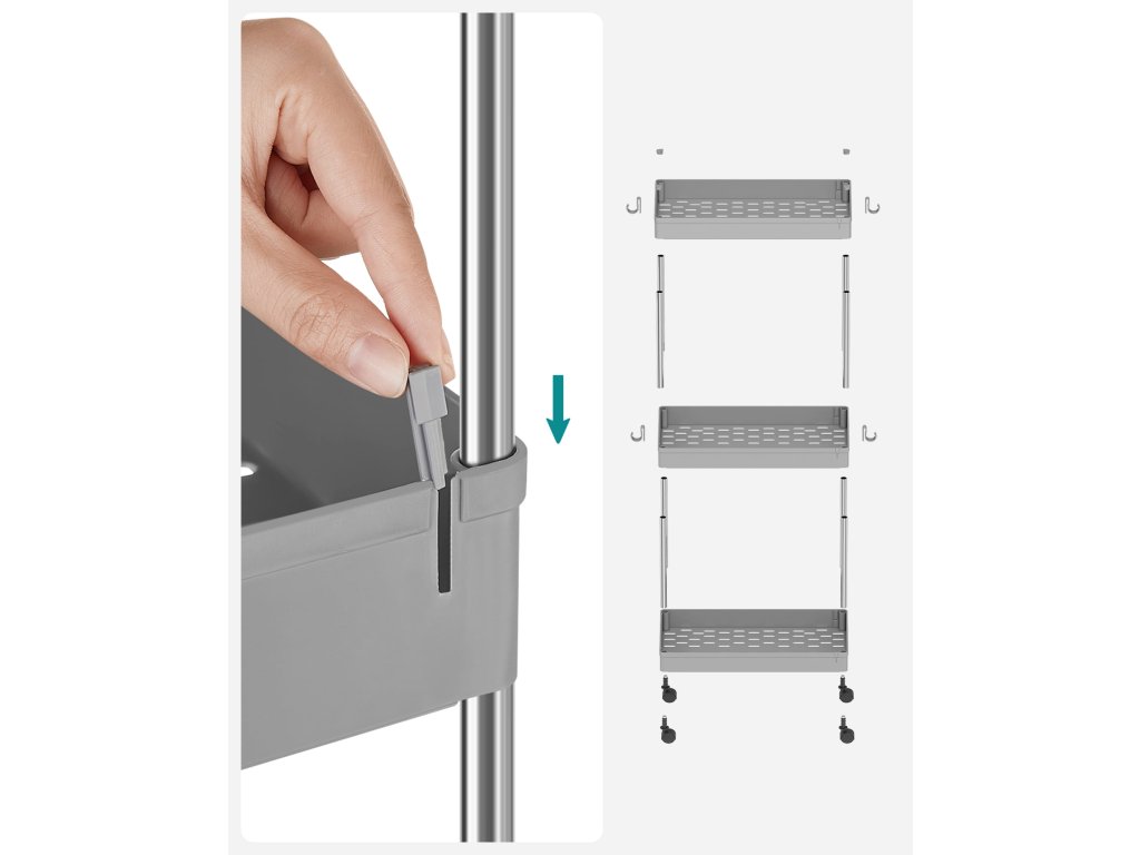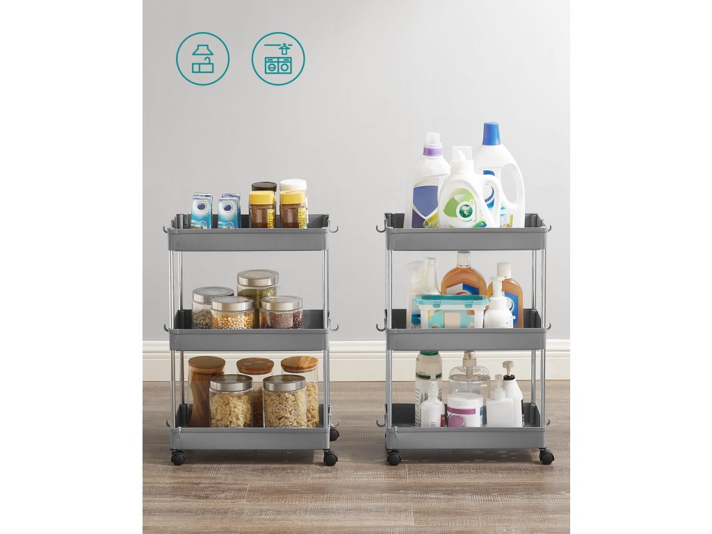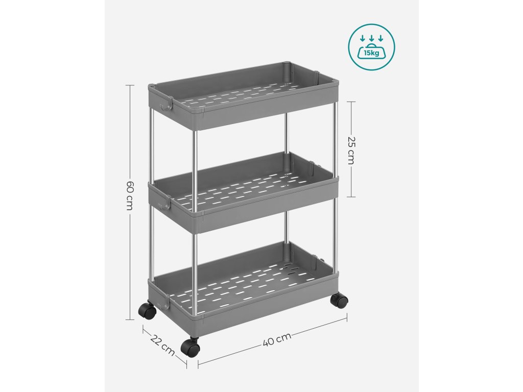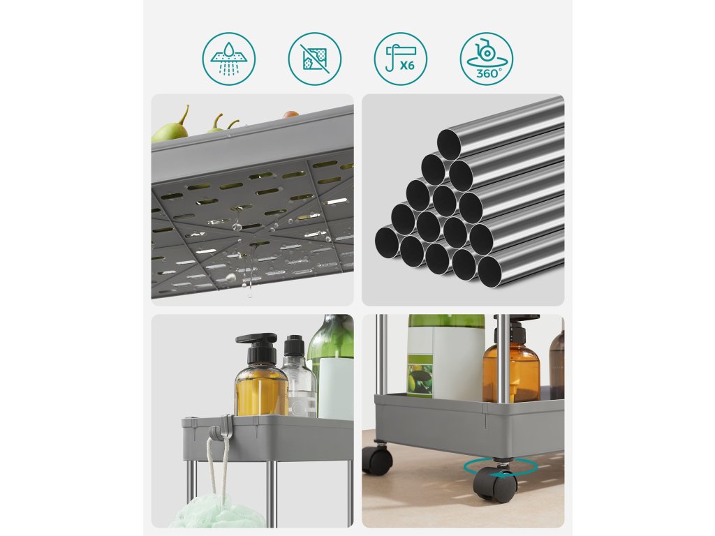 Praktické regály do kúpeľne sú ideálnym riešením pre udržanie poriadku a prehľadnosti. Vďaka ľahkej a odolnej konštrukcii z chrómovanej ocele a polypropylénu sa ľahko udržiavajú a sú odolné voči vlhkosti. Viacúrovňové police umožňujú efektívne využitie priestoru a ľahký prístup ku všetkým potrebným veciam. Vďaka možnosti pridania alebo odobratia políc aj koliesok je možné ich jednoducho prispôsobiť vašim konkrétnym potrebám.
