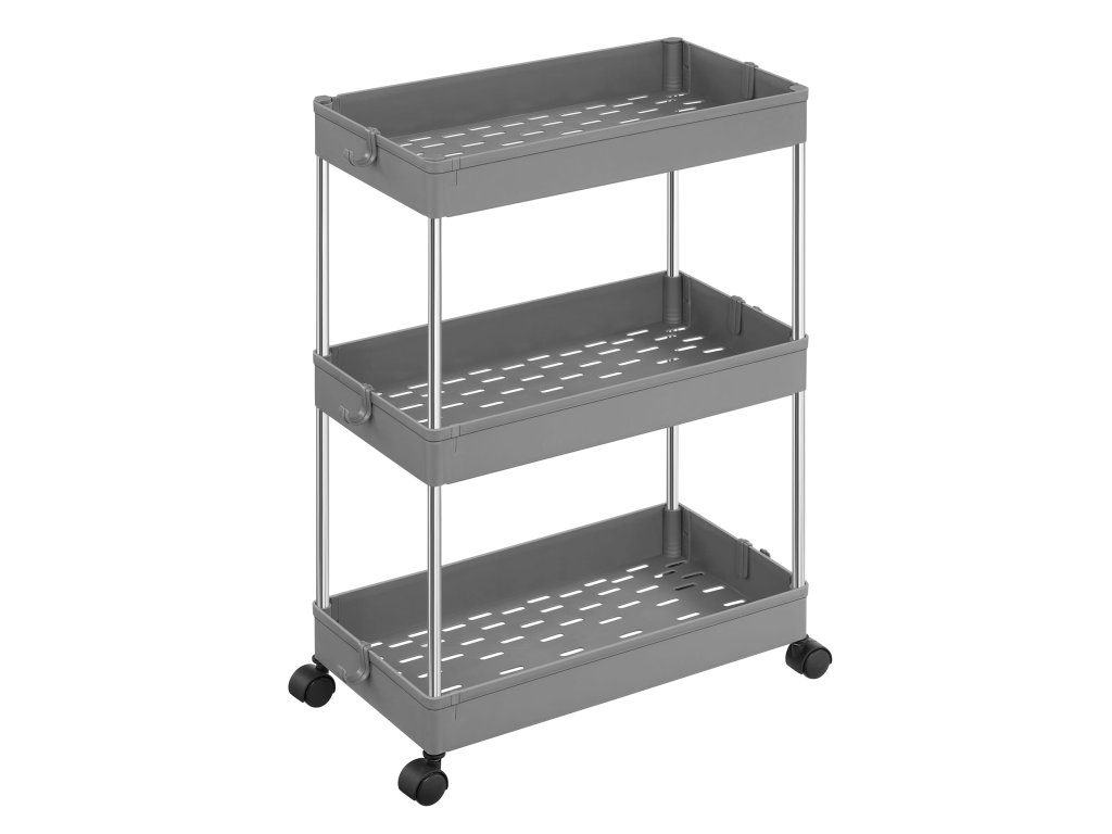 AKCIA Multifunkčný regál na kolieskach MOBIX s 3 košíkmi, sivý II. akosť