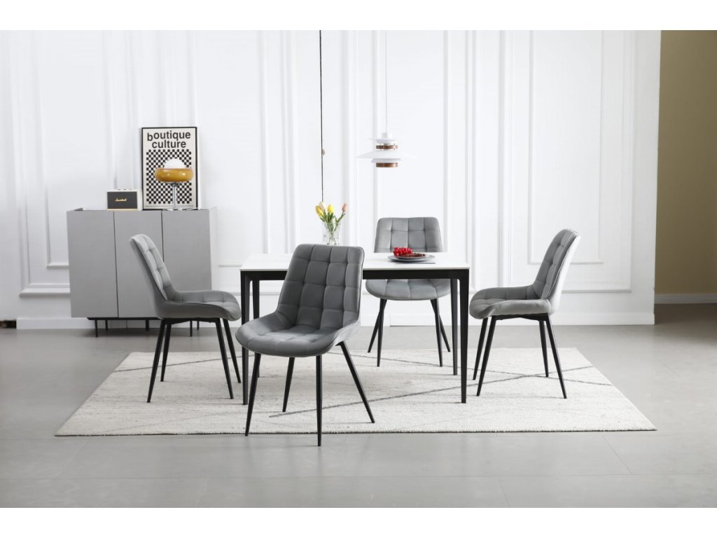 Štýl spájajúci jednoduché tvary a vysokú funkčnosť. Stavte na striedme doplnky, jemnú paletu farieb a prírodné materiály. Skvelými doplnkami do škandinávskej jedálne sú vždyzelené rastliny, farebné prestieranie a veľké kovové lampy. Škandinávsky interiér sa nezaobíde veľkých okien a osvetlenia, ktoré zaručia svetlo aj počas krátkych dní. Svetlosivá jedálenská stolička Bera dokonale zapadne do jedálne inšpirovanej škandinávskymi krajinami. Jednoduché prešívanie a čierne nohy zlaďte so stolom s kovovými elementmi. Výborne vyzerajú rôzne farby stoličiek pri jednom stole. Nebojte sa zmeny.
