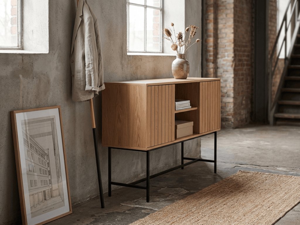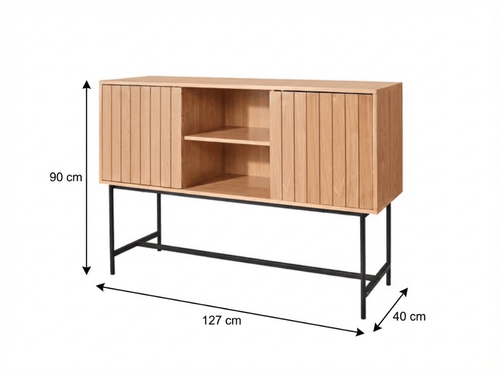 Tento nábytok ponúka praktické riešenie pre každodenné usporiadanie obývacej izby aj moderného interiéru. Vďaka kombinácii otvoreného priestoru a uzatvárateľných skriniek ľahko uložíte elektroniku, dekorácie aj drobnosti, ktoré chcete mať po ruke, ale prehľadne usporiadané. Horná doska je ideálna na vystavenie štýlových doplnkov, ktoré dotvoria atmosféru miestnosti. Prírodný dekor dubu v kombinácii s kovovými prvkami pôsobí nadčasovo a ľahko sa zladí s ďalšími kusmi nábytku.