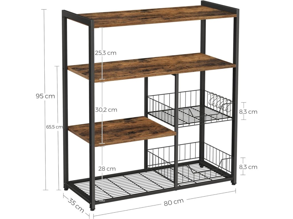 Kuchynský regál TAYLOR 95x80 cm, rustikálne hnedý