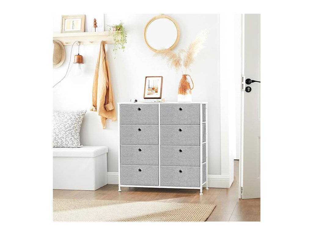 Komoda s textilnými zásuvkami je ideálnym riešením pre všetkých, ktorí hľadajú kombináciu funkčnosti a estetiky. Je ľahká, ľahko premiestniteľná a zároveň prekvapivo priestranná – perfektne sa hodí do menších bytov aj väčších interiérov. Či už potrebujete uložiť oblečenie, doplnky, dokumenty alebo drobnosti každodennej potreby, komoda vám pomôže udržať všetko prehľadne a štýlovo usporiadané. Vďaka svojmu univerzálnemu vzhľadu sa ľahko zladí s ostatným nábytkom a stane sa praktickým a elegantným pomocníkom v každej domácnosti.