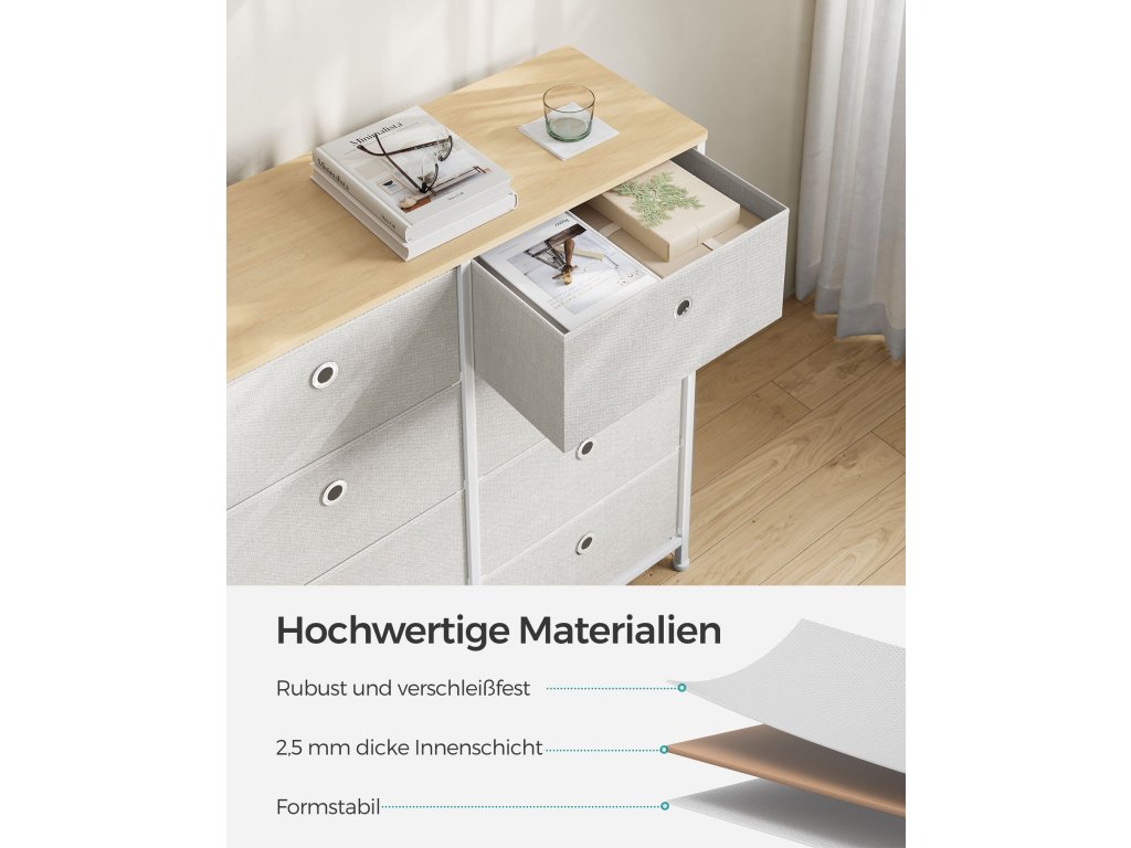 Komoda s textilnými zásuvkami je ideálnym riešením pre všetkých, ktorí hľadajú kombináciu funkčnosti a estetiky. Je ľahká, ľahko premiestniteľná a zároveň prekvapivo priestranná – skvele sa hodí do menších bytov aj väčších interiérov. Či už potrebujete uložiť oblečenie, doplnky, dokumenty alebo drobnosti každodennej potreby, komoda vám pomôže udržať všetko prehľadne a štýlovo usporiadané. Vďaka svojmu univerzálnemu vzhľadu sa ľahko zladí s ostatným nábytkom a stane sa praktickým a elegantným pomocníkom v každej domácnosti.