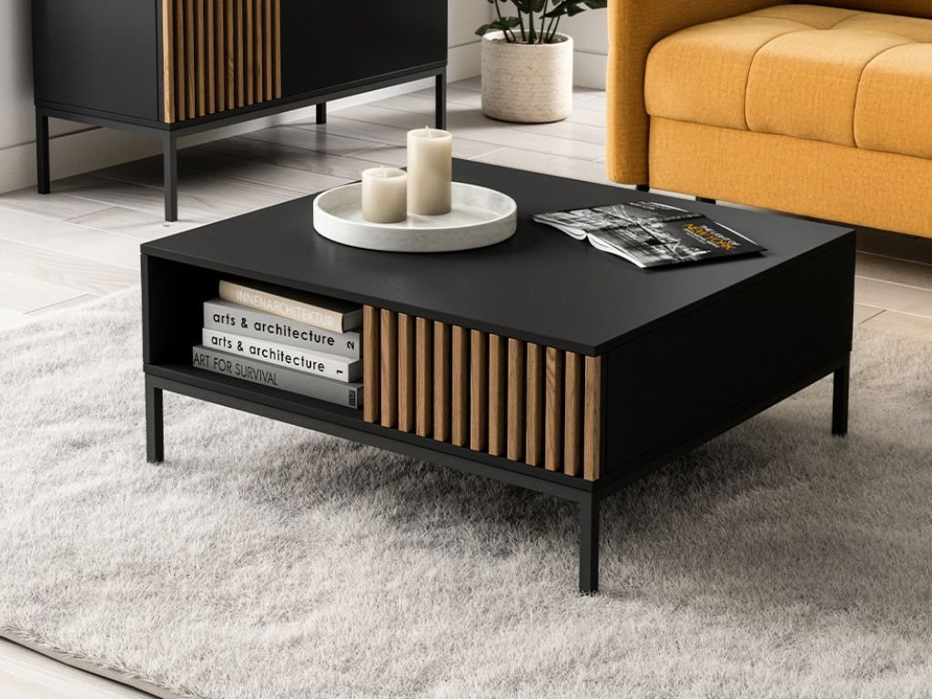 Konferenčný stolík MEORATI 80x80 cm, čierna/dub artisan