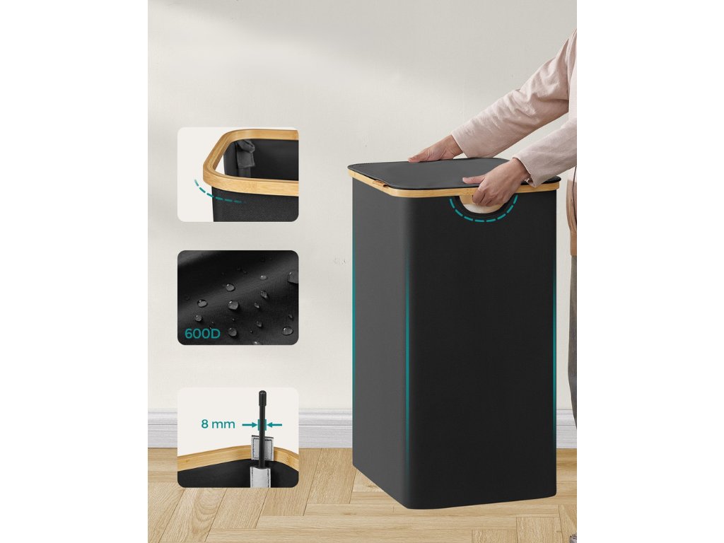 - Moderný dizajn s kombináciou bambusu a čiernej farby