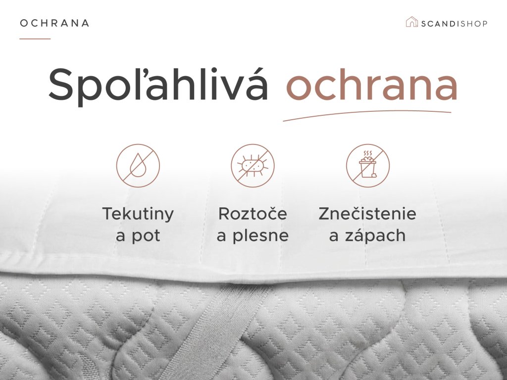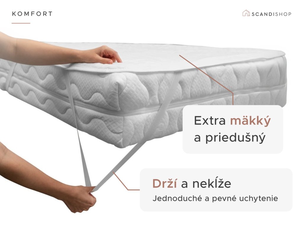 - Zapínanie: všité gumy pre pripevnenie na matrac