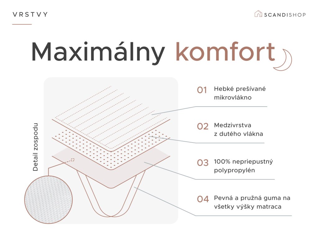 - Zapínanie: všité gumy pre pripevnenie na matrac