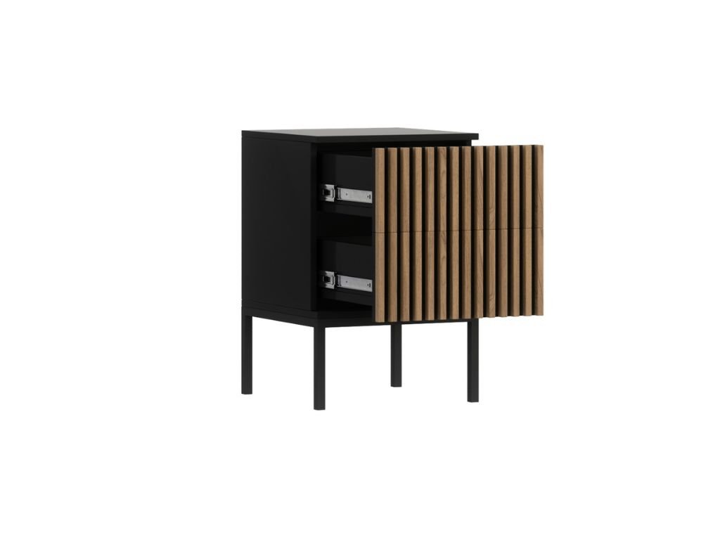 Tento stolík je nielen štýlovým doplnkom, ale aj praktickým riešením pre každodenné použitie. Či už slúži ako nočný stolík pri posteli, alebo ako príručný stolík v obývacej izbe, jeho dve priestranné zásuvky vám pomôžu udržať poriadok a mať všetko potrebné vždy po ruke. Vďaka kompaktnému dizajnu a dekoru dubu artisan ľahko zapadne do akéhokoľvek interiéru, kde prinesie pocit útulnosti a elegancie. Ideálna voľba pre každého, kto hľadá spojenie funkčnosti s nadčasovým štýlom.