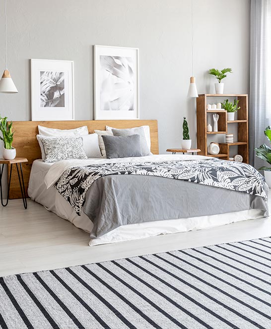 Do svetlého interiéru s drevenými alebo kovovými elementmi vyberajte prosté doplnky. Kvalitné obliečky z prírodných materiálov sú nevyhnutnou súčasťou každej škandinávskej spálne. Obľúbené a praktické bavlnené obliečky s jemným motívom v svetlosivej alebo staroružovej farbe rozžiaria celý interiér.