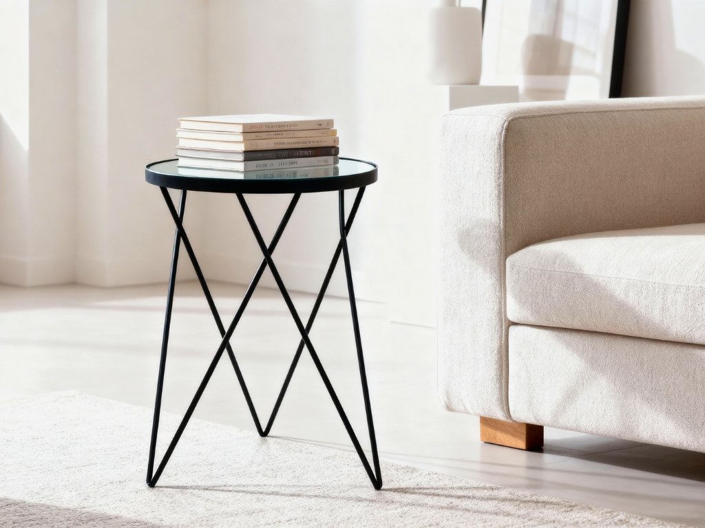 Odkladací stolík EMILY v elegantnom čiernom vyhotovení a so sklenenou doskou je štýlovým aj praktickým doplnkom do každého interiéru. Vďaka svojmu ľahkému, ale stabilnému kovovému rámu pôsobí vzdušne, no zároveň ponúka dostatok priestoru na odloženie knihy, kávy alebo dekorácií. S priemerom 35,5 cm sa skvele hodí vedľa pohovky, kresla alebo postele. Jeho nadčasový dizajn vynikne v škandinávskom, modernom aj minimalistickom štýle, a krásne sa kombinuje s doplnkami v svetlých tónoch alebo naopak s výraznými farebnými akcentmi.
