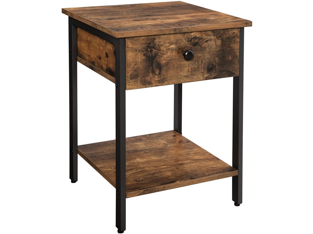 Tento praktický príručný stolík s hlbokou zásuvkou a otvorenou policou ponúka ideálnu kombináciu štýlu a funkčnosti. Skvele sa hodí ako nočný stolík do spálne alebo odkladací stolík vedľa pohovky, kde poskytne miesto pre lampičku, knihu i šálku čaju. Zásuvka pojme drobnosti, ktoré chcete mať po ruke, ale zároveň upratané. Nadčasový industriálny dizajn v rustikálne hnedej farbe sa ľahko začlení do rôznych typov interiérov a dodá im útulný charakter.