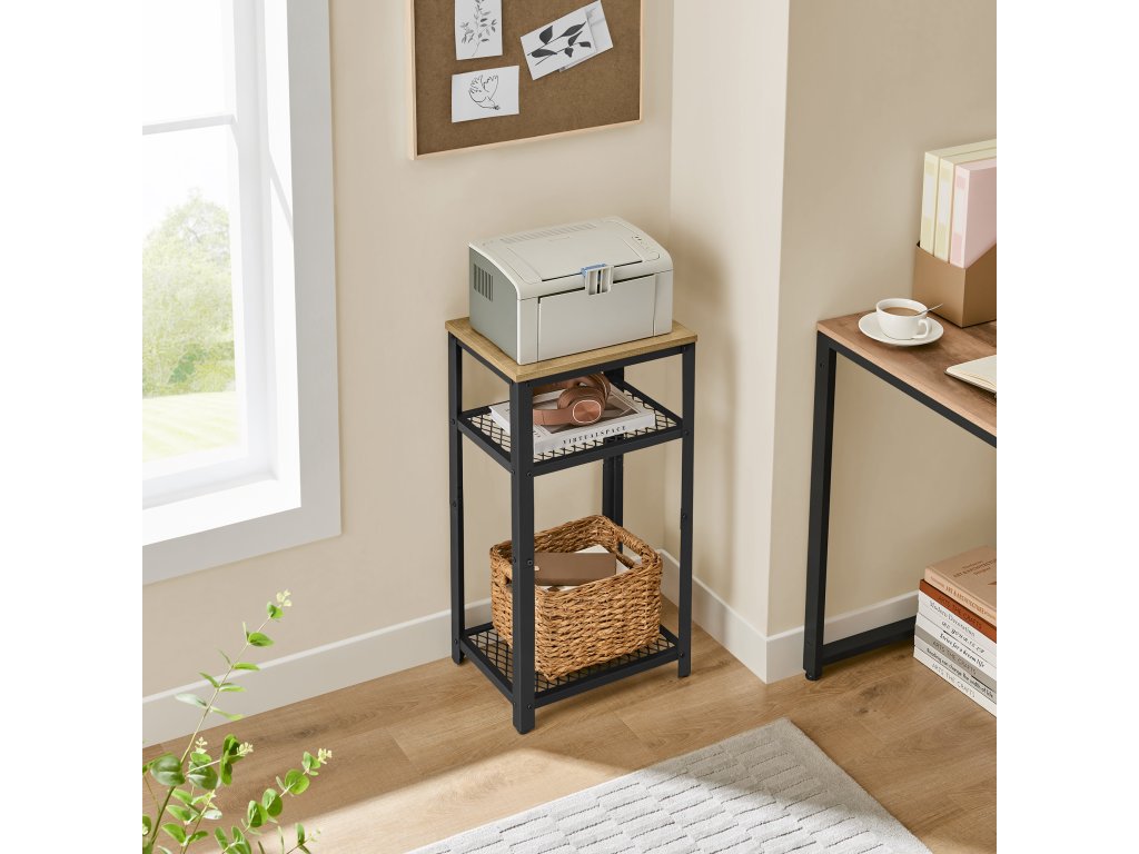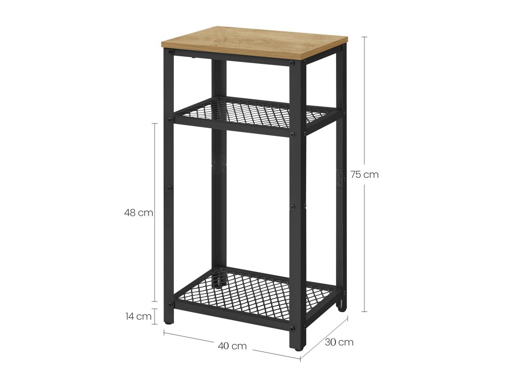 Tento všestranný kus nábytku ponúka nielen moderný dizajn, ale aj praktické vlastnosti, ktoré oceníte v každodennom živote. Kombinácia odolnej drevotriesky a robustného kovu dodáva produktu stabilitu a dlhú životnosť, zatiaľ čo jeho vodeodolný povrch zaručuje jednoduchú údržbu. Vďaka svojim rozmerom a nastaviteľnosti nožičiek sa dokonale hodí do rôznych priestorov, od obývacej izby po kanceláriu. Industriálny štýl v kombinácii s funkčnosťou vytvára elegantný a praktický doplnok, ktorý splní vaše očakávania a pridá vášmu interiéru moderný nádych.
