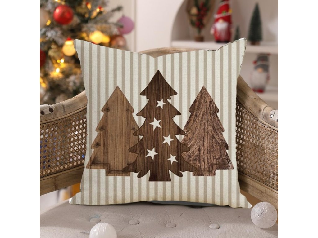 Vianočný obliečka na vankúš WOODEN TREES 45x45 cm, béžový