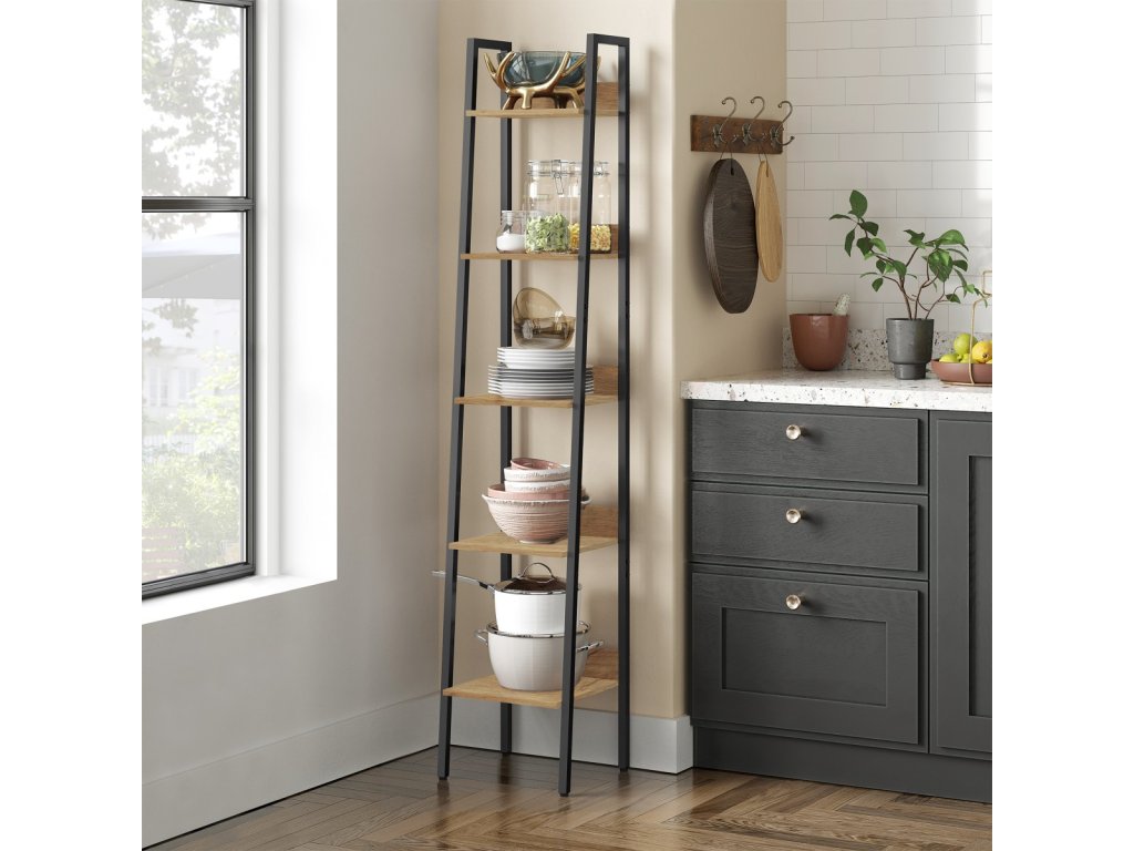- Moderný dizajn so schodovito usporiadanými 5 policami