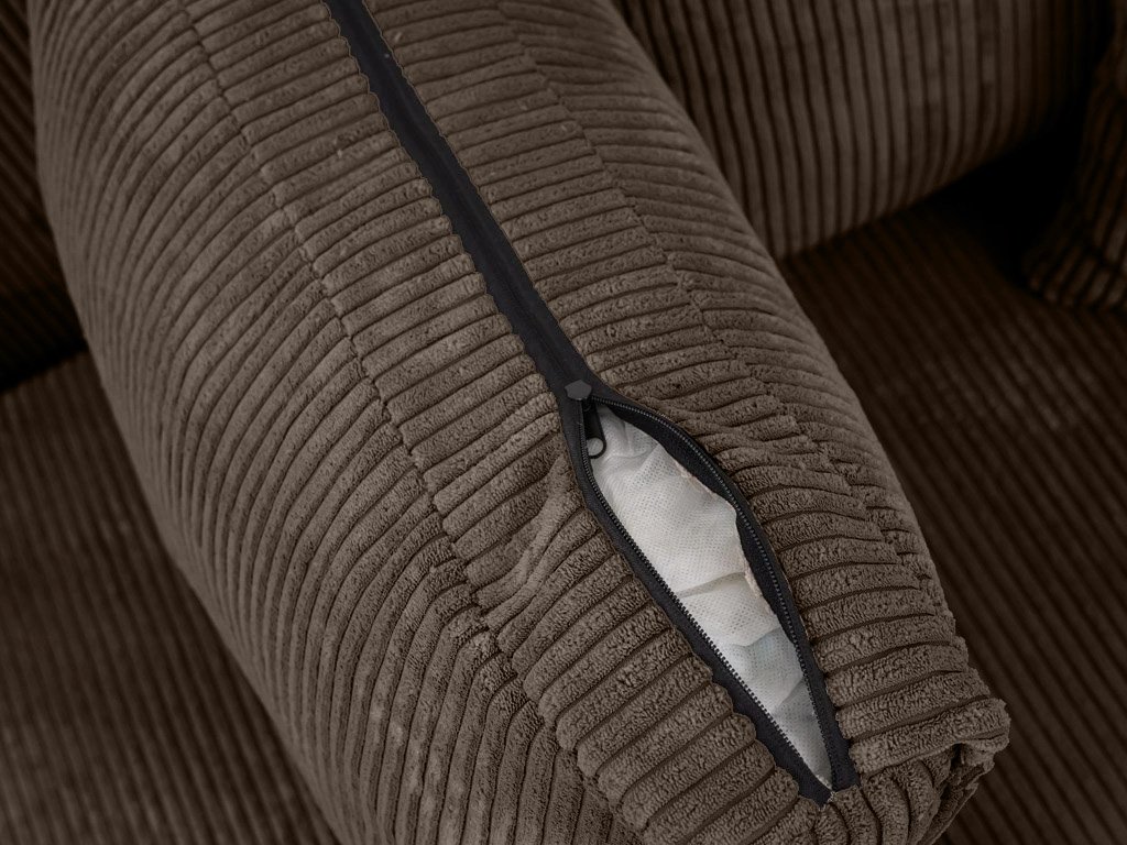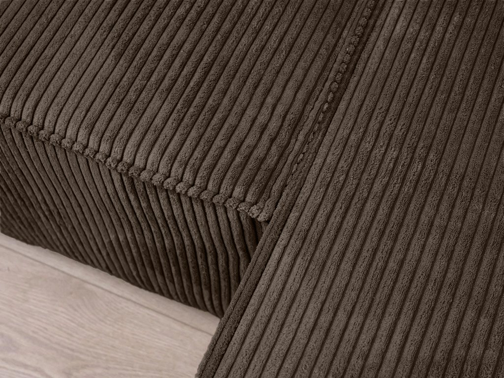 Súprava je potiahnutá Poso tkaninou s jemnou rebrovanou textúrou, veľmi príjemnou na dotyk, s vysokou gramážou 380g/m2 a odolnosťou voči oderu. Sedáky súpravy tvoria kvalitná a dlhodobo tvarovo stála polyuretánová pena doplnená o výstuhu z vlnitých prúžin. Konštrukcia sedačky je vyrobená z masívneho borovicového a bukového dreva s doplnkovým materiálom z drevotriesky, preglejky a sololitu.