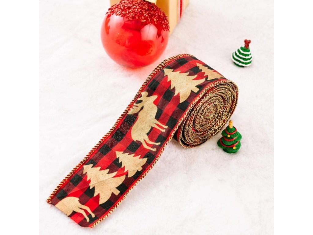 Vianočná stuha REINDEER 5 cm x 5 m, červená