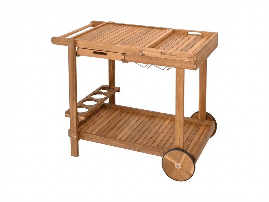 Záhradný servírovací stolík na kolieskach GRIL PARTY, akáciové drevo