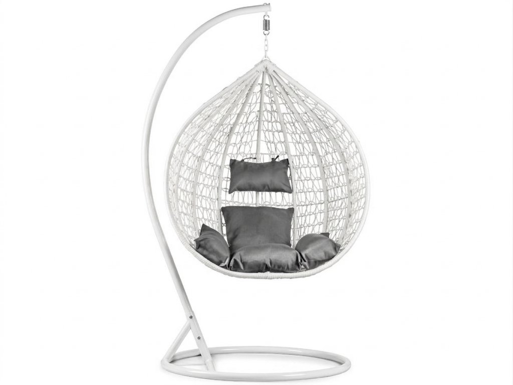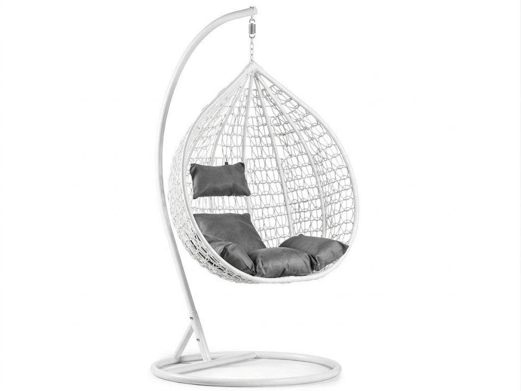 Biele závesné kreslo KOKON so stojanom, sivý vankúš