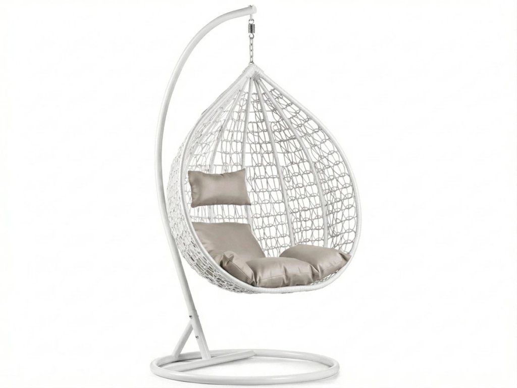 Bílé závěsné křeslo KOKON se stojanem, světlý polštář