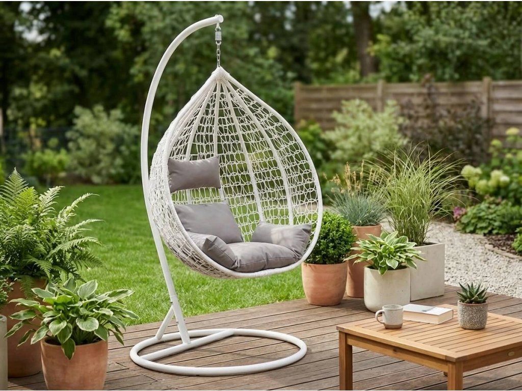 Užijte si klidné chvíle ve vlastním koutku pohody. Závěsné křeslo není jen místem k sezení, ale také způsobem, jak zpomalit a načerpat novou energii. Jemné pohupování pomáhá uvolnit tělo i mysl, ať už relaxujete venku na zahradě nebo uvnitř při čtení oblíbené knihy. Díky odolným materiálům a elegantnímu designu se stane stylovým doplňkem každého prostoru – a vaším novým oblíbeným místem.